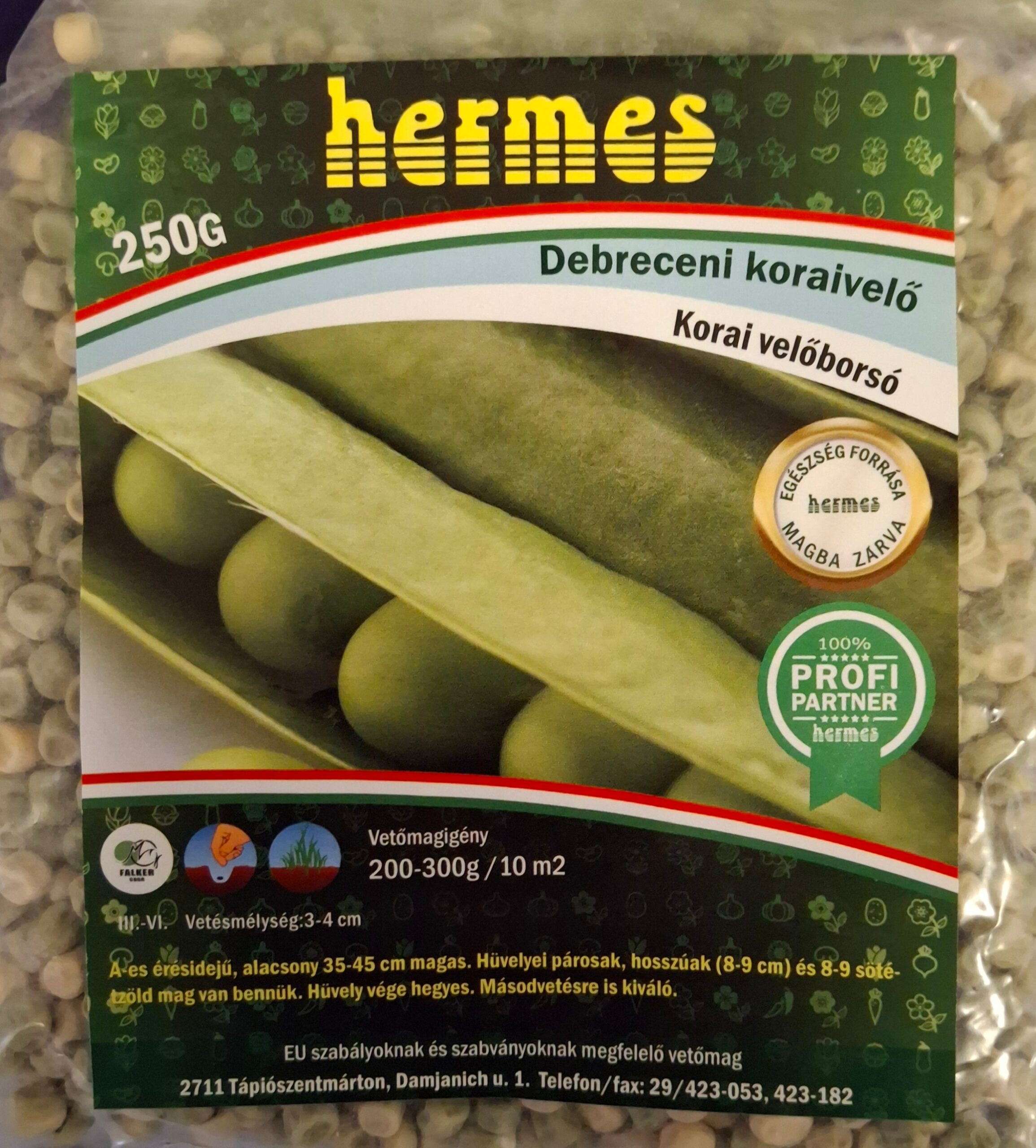 A-s érésidejű, alacsony 35-45 cm magas. Hüvelyei párosak, hosszúak (8-9 cm) és 8-9 sötétzöld mag van bennük. Hüvely vége hegyes. Másodvetésre is alkalmas.